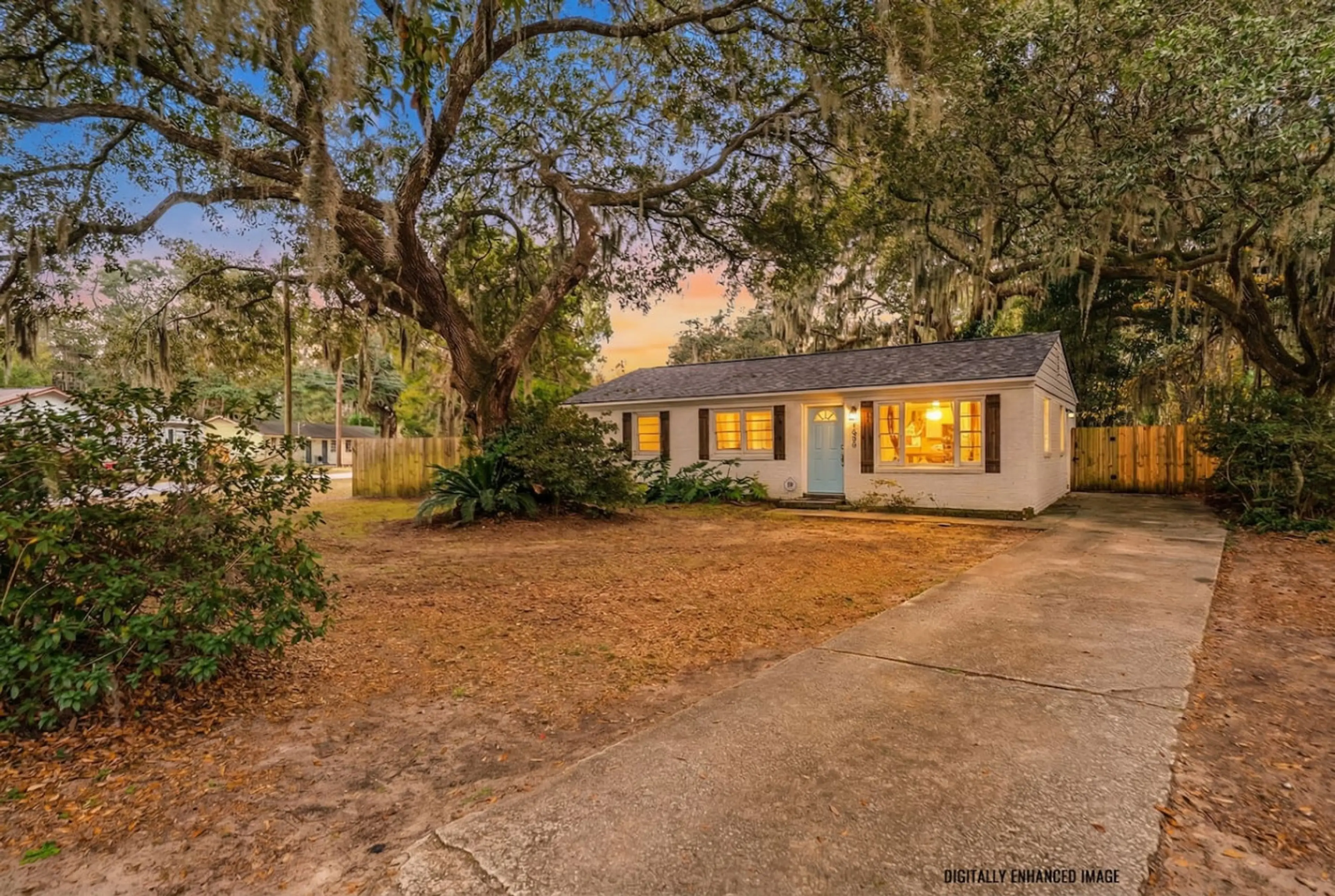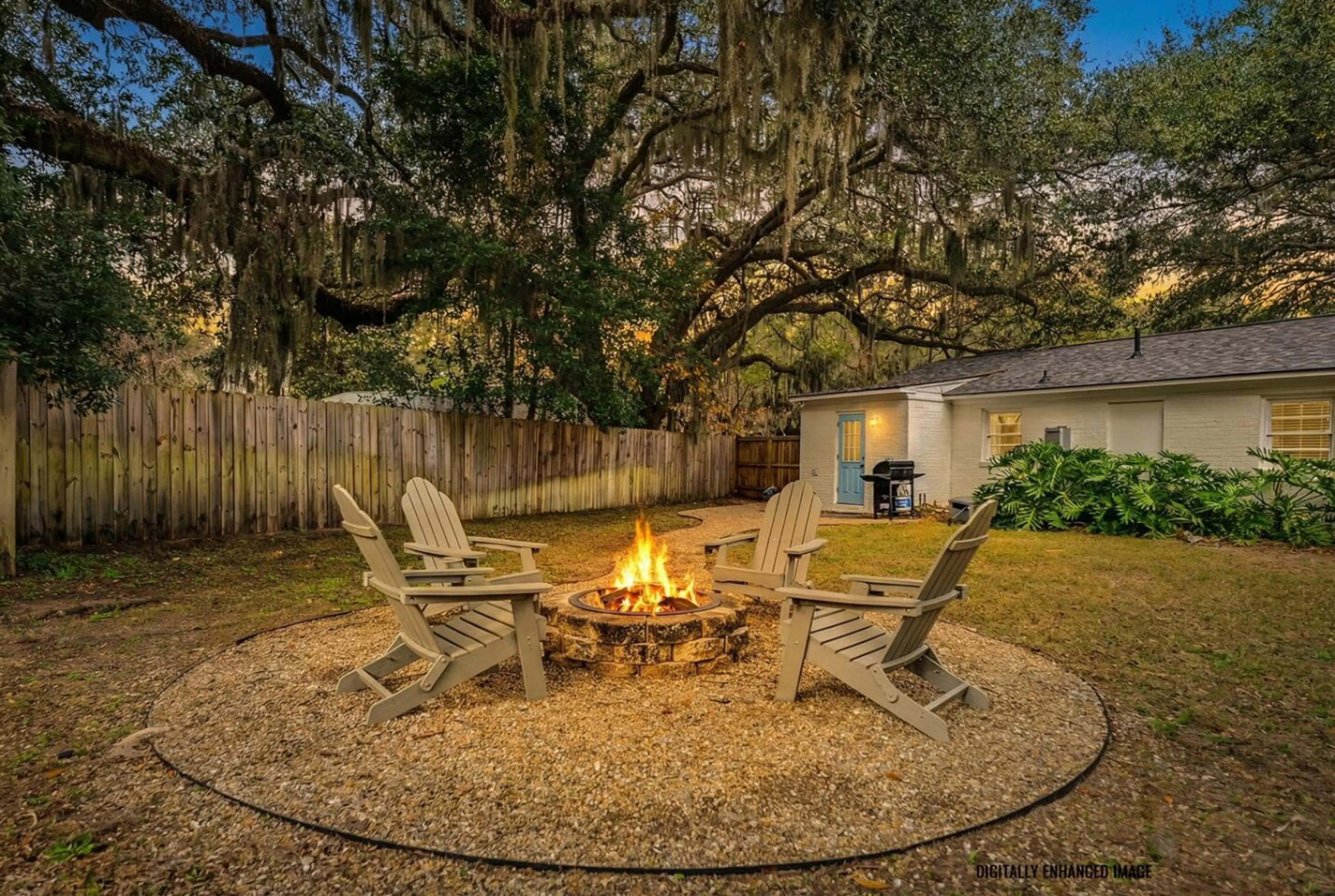 Nestled in the heart of Beaufort, SC, this charming retreat is framed by four majestic oak trees draped in Spanish moss. The home offers 3 bedrooms and 2 baths, a fully equipped kitchen, coffee maker, and inviting living spaces. Enjoy a fenced backyard with fire pit and gas grill, & bikes for riding...